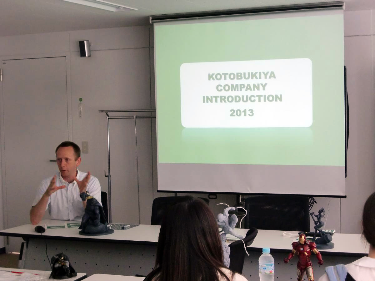 After Ghibli, we went to Kotobukiya Co., Ltd, a world-famous manufacturing company of model kits, fine art statues, and action figures. One of the Kotobukiya staff, Mr. Paske, gave us an informative presentation about Kotobukiya and international business, and the differences between American and Japanese markets.