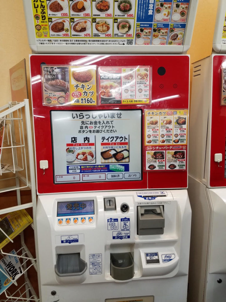 Here’s the machine where you’ll be placing your order. You can do a take out order or an eating in order! It’s a similar machine to other places. It’s a cash only machine. At this machine, you have to insert money first before pressing on what you want.
