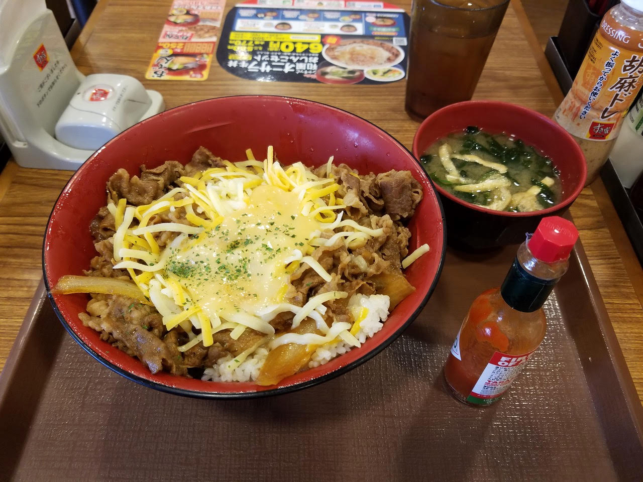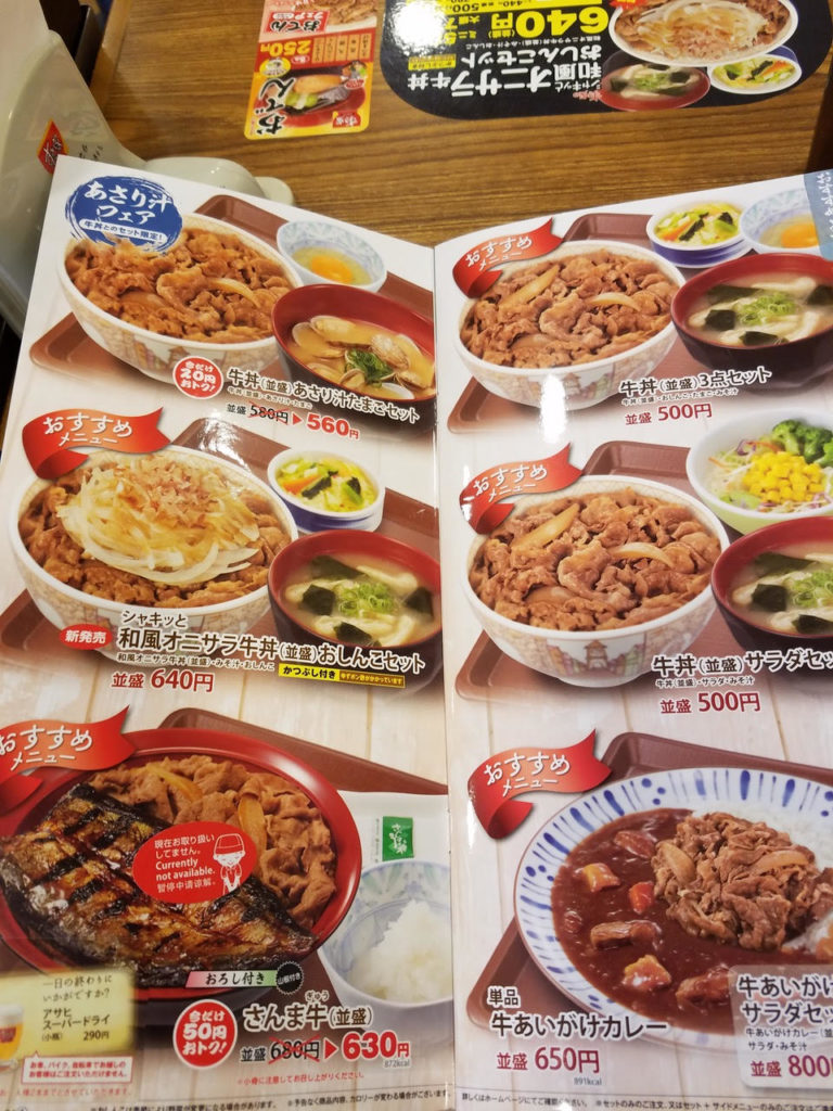 Sukiya (すき家) is considered to be the largest gyudon restaurant chain. It has 1,964 restaurants scattered all around the 47 Japanese prefectures as of 2017, and more all around the world. Its slogan is straight to the point, written in romanji”save time and money”.