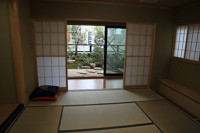 The tea room usually has a low ceiling and no furniture, The guest and host sit seiza-style, a term for one of the traditional formal ways of sitting in Japan), on the floor.